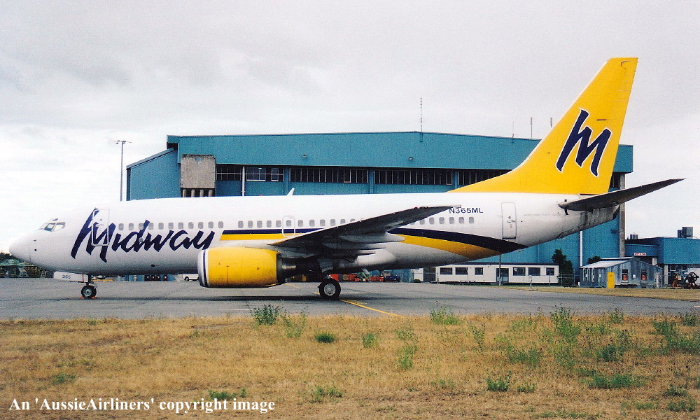 This aircraft was ordered new by Midway Airlines Corporation - ? Rolled off Boeing production line at Seattle - January 26, 2001 First flown as 'N1786B' - February 06, 2001 Powered by CFM International CFM56-7B24 engines Reregistered as N1768B - February 2001 Entered onto the United States Aircraft Register as N365ML - February 2001 Accepted by Midway Airlines at Seattle (Boeing Field) - February 21, 2001Ferried Seattle (Boeing Field) - Raleigh Durham on delivery to Midway as JI9551 - February 21, 2001 Operated its first revenue service Raleigh Durham - Palm Beach as JI332 - February 21, 2001 Sold to First Union Trust Company - March 19, 2001 Registered to First Union Trust Company, Wilmington, Delaware - April 20, 2001 Leased to Midway Airlines as the registered operator Operated its last revenue service - September 11, 2001 Midway Airlines ceased all operations - September 12, 2001 It was observed stored at Goodyear, Arizona in the standard Midway livery - November 24, 2001 Midway resumed services - December 14, 2001 This aircraft was returned to service - December 19, 2001 Registered to Aircraft 30740 LLC, Stamford, Connecticut - January 23, 2002 Registered to General Electric Capital Aviation Services Ltd and leased to Midway Airlines Midway Airlines ceased operations - July 17, 2002 It was observed stored at Goodyear, Arizona in standard Midway livery - August 29, 2002 Ferried Goodyear - Marana - October 05, 2002 Ferried Marana - Tucson - October 22, 2002 Ferried Tucson - Gander - Lasham in the standard Midway livery as GCC740 - October 23, 2002 Departed Lasham on the ferry flight to Australia as GCC740 - January 21, 2003 Arrived Melbourne (Tullamarine) on completion of the ferry flight - January 23, 2003 Ferried Melbourne (Tullamarine) - Christchurch in the standard Midway livery as - January 24, 2003 Repainted into the Virgin Blue livery at Christchurch in preparation for its lease to Virgin Blue Cancelled from the United States Aircraft Register - January 28, 2003 Entered onto Australian Aircraft Register as VH-VBT - January 31, 2003 Leased to Virgin Blue Airlines Pty Ltd as the registered operator Ferried Christchurch - Brisbane on delivery to Virgin Blue as DJ9081 - March 16, 2003 The aircraft was named 'Launie Lass' Operated its first revenue service Brisbane - Adelaide (West Beach) as DJ950 - March 21, 2003 Registered to Ogygian Pty Ltd, Shannon / GE Commercial Aviation Services Ltd - August 02, 2005 Leased to Virgin Blue Airlines Pty Ltd as the registered operator Operated its final revenue service Adelaide (West Beach) - Brisbane as DJ765 - January 30, 2009 Ferried Brisbane - Melbourne (Tullamarine) as DJ9070 - January 31, 2009 It was observed stored at Melbourne (Tullamarine) in an all-white livery - March 20, 2009 Entered onto the United States Aircraft Register as N737KA - March 31, 2009 Registered to NAS Investments 1 Inc, Stamford, Connecticut Cancelled from the Australian Aircraft Register - March 31, 2009 Departed Melbourne (Tullamarine) on the ferry flight to the United States - April 07, 2009 Arrived San Ontonio, Texas on completion of the ferry flight - April 09, 2009 Ferry route: Melbourne - Pago Pago - Kona - San Antonio Leased to Kaiser Air Inc - May 2009 Sub-leased to Miami Air International - May 15, 2009 It was observed at Oakland, California with light blue stripes and hibiscus flower near door - June 16, 2009 Operates regular private charter flights Oakland - Kailua (Kona) as Kona Air Shuttle Configured to seat 60 First Class passengers Current with Kona Air Shuttle |