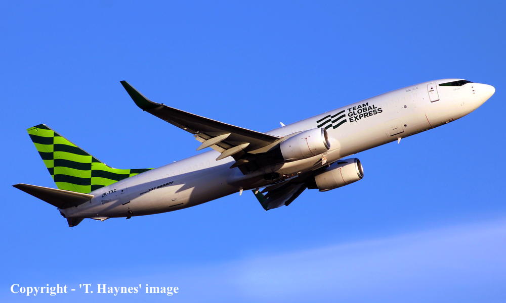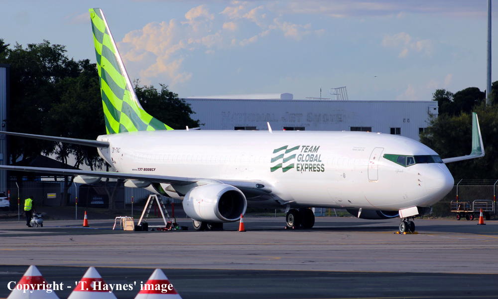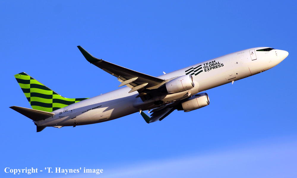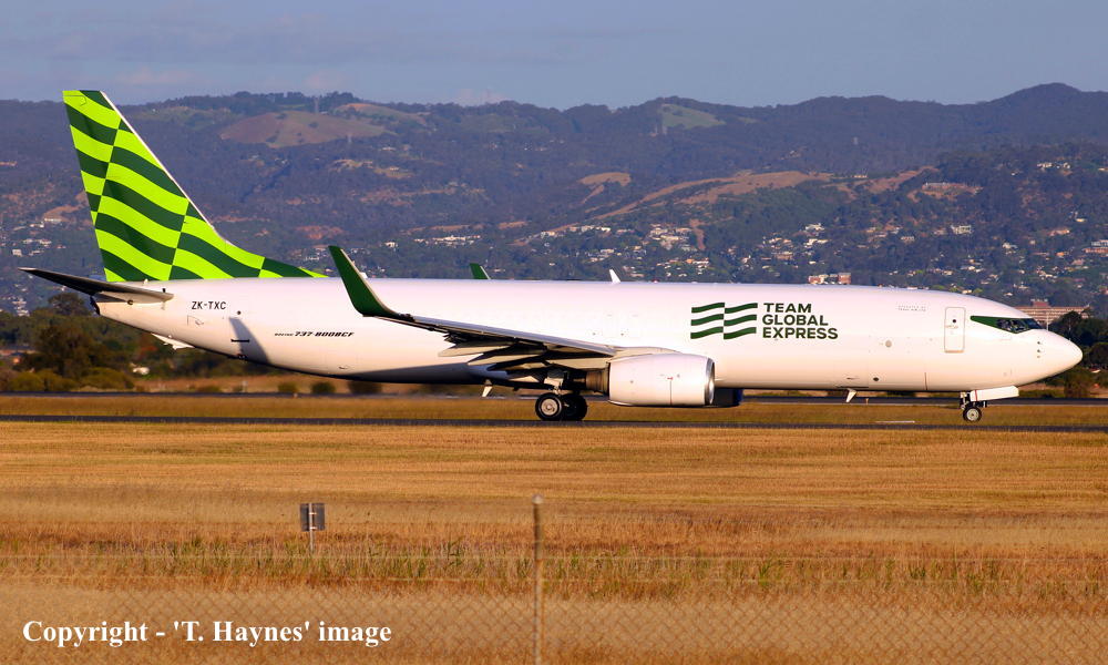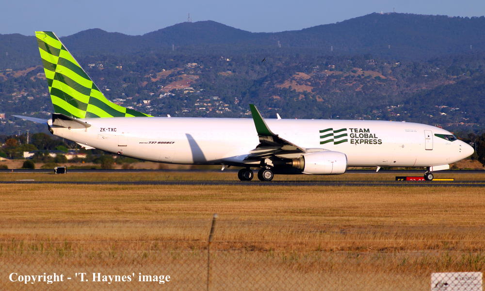 This aircraft was ordered new by Virgin Blue Airlines - ? Powered by CFM International CFM56-7B26 engines Rolled off the Boeing production line at Seattle with winglets - September 16, 2003 First flown as 'N17823' - September 25, 2003 Entered on the Australian Aircraft Register as VH-VOQ - October 01, 2003 Leased to Virgin Blue Airlines Pty Ltd as the registered operator Accepted by Virgin Blue at Seattle (Boeing Field) in the standard 'Pacific Blue' livery - October 16, 2003 Departed Seattle (Boeing Field) on the delivery flight to Australia - October 21, 2003 It arrived at Brisbane on completion of the delivery flight - October 23, 2003 Delivery route: Seattle (Boeing Field) - Kahului - Noumea - Brisbane The aircraft was named 'Peta Pan' Operated its first revenue service Brisbane - Melbourne (Tullamarine) as DJ336 - October 31, 2003 Registered to VBNC2 Pty Ltd - August 15, 2005 Leased to Virgin Blue Airlines Pty Ltd as the registered operator Virgin Blue was renamed Virgin Australia Airlines Pty Ltd - May 04, 2011 Ferried Christchurch - Melbourne (Tullamarine) in the new livery - December 21, 2011 The aircraft was renamed 'Margaret River' Returned to service - ? Registered to Virgin Australia 2013-1 Issuer Co Pty Ltd, Spring Hill, Queensland - October 30, 2013 Leased to Virgin Australia Airlines as the registered operator Operated its last revenue service Mackay - Brisbane as VOZ616 - March 13, 2020 It was withdrawn from service and stored at Brisbane due to the COVID 19 pandemic Ferried Brisbane - Alice Springs for storage - October 18, 2020 Registered to De Lore and Associates Pty Ltd, Balmoral, Queensland - January 13, 2021 Cancelled from the Australian Aircraft Register - October18, 2021 Entered onto the Cayman Islands Aircraft Register as VP-CJA - October 18, 2021 Registered to JP Lease Products and Services, Tokyo, Japan Ferried Alice Springs - China (Guangzhou) - October 27, 2021 Ferry route: Alice Springs - Darwin - Seoul - Guangzhou Conversion of the aircraft to an 'all-freight' configuration commenced - October 29, 2021 Conversion completed at Guangzhou - June 01, 2023 The aircraft was now classified as a Boeing 737-8FE(F) Ferried Guangzhou - Indonesia (Jakarta) for storage - June 02, 2023 Ferried Indonesia (Jakarta) - Alice Springs for storage - August 24 - 25, 2023 Ferry route: Jakarta - Darwin - Alice Springs Ferried Alice Springs - Brisbane - New Zealand (Hamilton) - November 27 - 28, 2023 Cancelled from the Cayman Islands Aircraft Register - December 19, 2023 Entered onto the New Zealand Aircraft Register as ZK-TXC - December 19, 2023 Registered to Texel Air New Zealand, Auckland Ferried Hamilton - Auckland as TNZ92 - January 25, 2024 Operated its first Texel Air service Auckland - Christchurch as TNZ92 - February 01, 2024 Ferried Auckland - Townsville as TNZ6103 - February 27, 2024 Repainted into the 'Team Global Express' livery at Townsville by Flying Colours Ferried Townsville - Brisbane as TNZ6104 - March 14, 2024 Entered service on behalf of Toll Priority operating TFX21 from Brisbane - Sydney (Kingsford Smith) - March 14, 2024 Flights using prefix 'TNZ' are operated for Texel Air Australasia (new name for Texel Air New Zealand) Flights using prefix 'TFX' are operated by Texel Air Australasia on behalf of 'Toll Priority' Current with Texel Air Australasia |