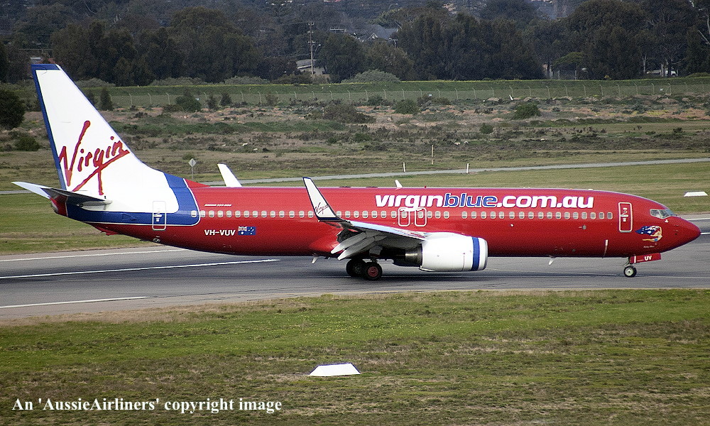 VH-VUV. Virgin Blue - 'Ruby Blue' in the standard livery at Adelaide West Beach Airport, July 16, 2010. (R. Brown Copyright Image 4621-155.) |