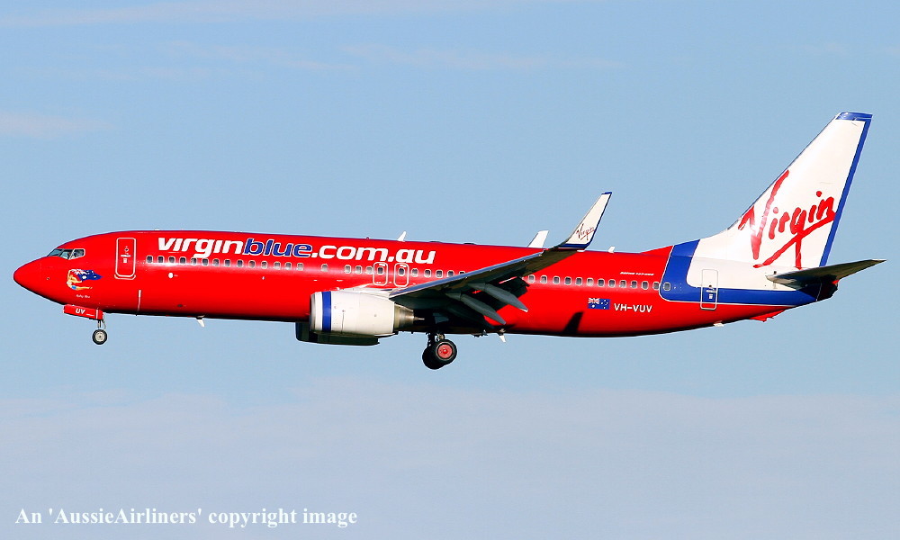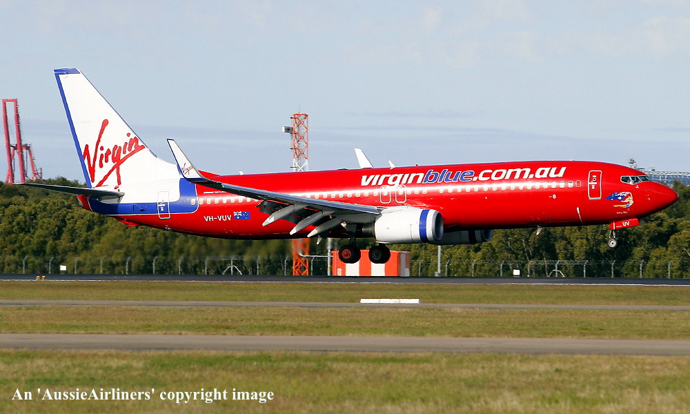 VH-VUV. Virgin Blue - 'Ruby Blue' in the standard livery at Brisbane Airport, December 27, 2011. (R. N. Smith Collection Copyright Image 4621-158.) |