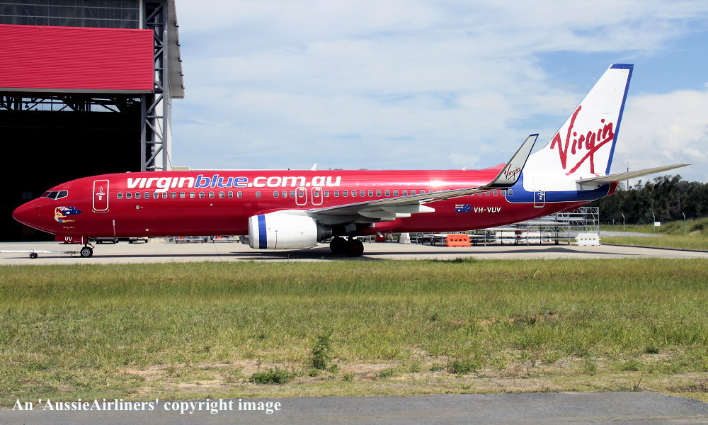 VH-VUV. Virgin Blue - 'Ruby Blue' in the standard livery at Brisbane Airport, May 07, 2012. (R. N. Smith Collection Copyright Image 4621-157.) |