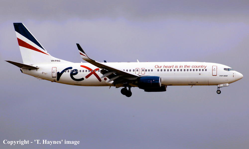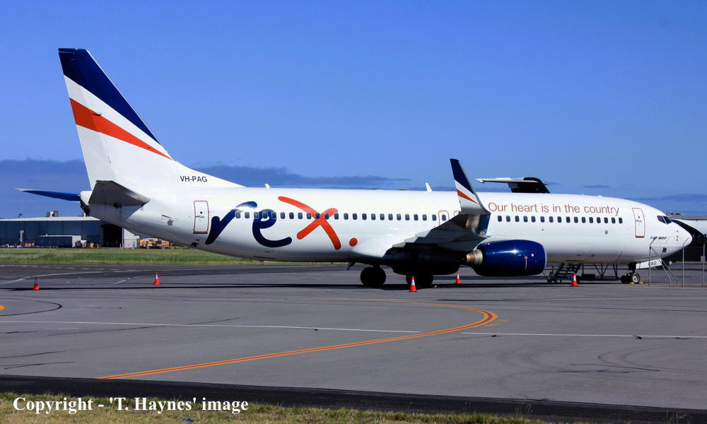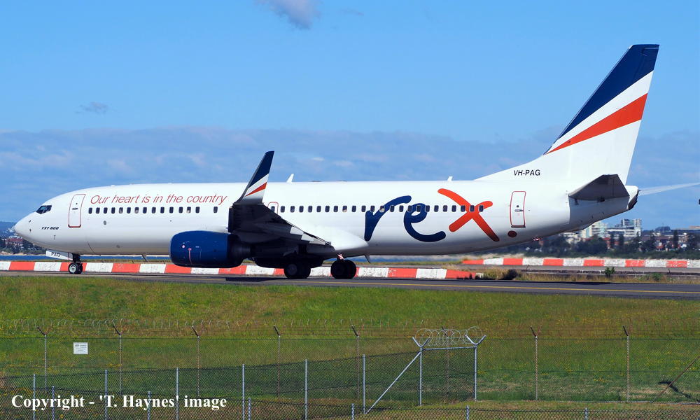 VH-PAG. REX Regional Express - in the standard livery with additional 'Our heart is in the country' titles livery at Sydney Kingsford Smith Airport, September 17, 2022. (T. Haynes Copyright Image 4623-069.) |