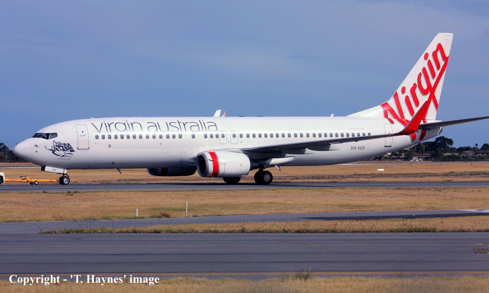 VH-VUV. Virgin Australia - 'Binalong Bay' in the standard livery at Adelaide West Beach Airport, November 17, 2018. (T. Haynes Copyright Image 4622-503.) |