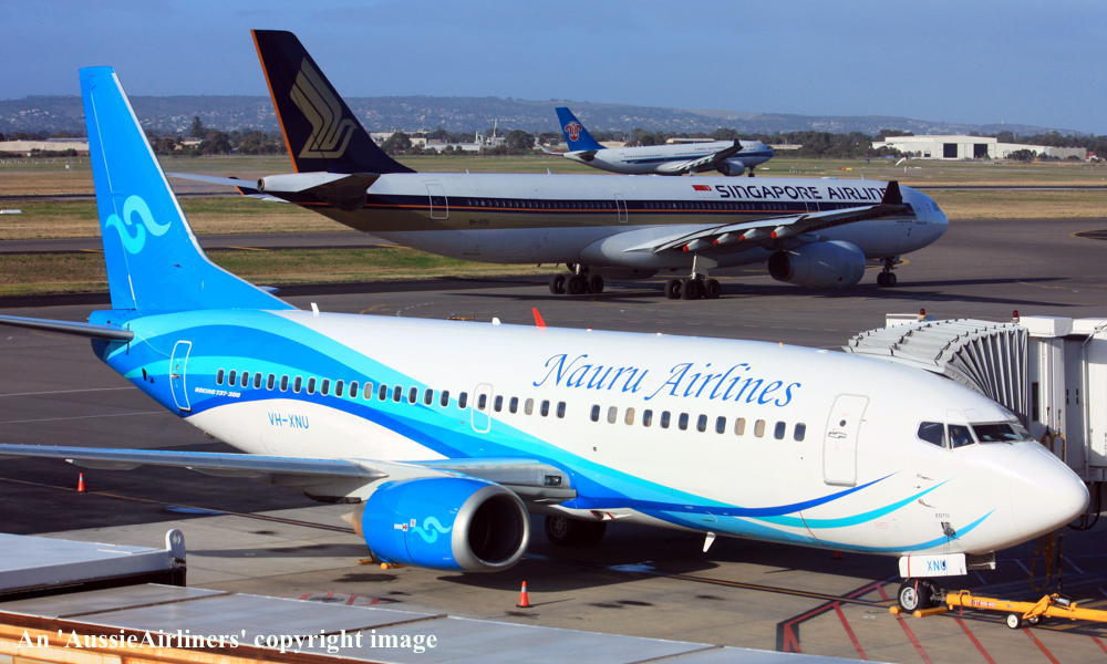 VH-XNU. Nauru Airlines - in the standard livery at the Adelaide West Beach Airport, July 16, 2018. (T. Haynes Copyright Image 4622-454.) |
