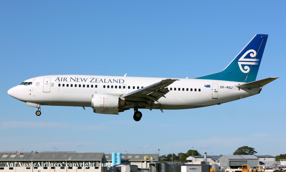 ZK-NGJ. Air New Zealand - in the 'Pacific Wave' livery at the Christchurch Airport, January 2008. (R. N. Smith Collection Copyright Image 4622-449.) |