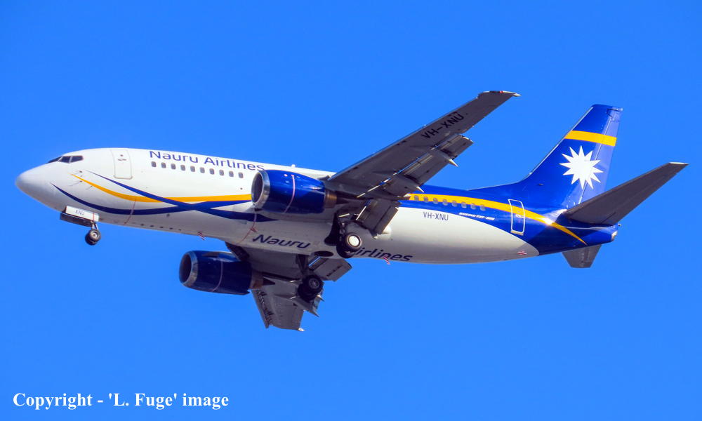 This aircraft was ordered new by Air New Zealand - ? It was allocated the Boeing Block Number ? This aircraft was the 1,113rd Boeing 737-300 and it was the final Boeing 737-300 built First flown as 'N1787B' - December 03, 1999 Entered onto the New Zealand Aircraft Register as ZK-NGJ - December 17, 1999 Registered to Air New Zealand Limited, Auckland, New Zealand This aircraft was 'ETOPS' equipped Departed Seattle (Boeing Field) on the delivery flight to New Zealand as NZ6737 - December 17, 1999 It arrived at Christchurch on completion of the delivery flight - December 19, 1999 Delivery route: Seattle - Honolulu - Pago Pago - Christchurch This aircraft was not named Operated its first revenue service Christchurch - Auckland as NZ504 - January 09, 2000 This aircraft was also deployed by the airline on its South Pacific routes Operated its final revenue service Auckland - Christchurch as NZ539 - August 10, 2015 Withdrawn from use and stored at Christchurch This aircraft had flown 36,273 hours with 38,635 cycles It was sold to Nauru Airlines - September 2015 Departed Christchurch on the ferry flight to Singapore (Seletar) as 'Southern Cross 1528' - September 20, 2015 Ferry route: Christchurch - Cairns - Lombok - Singapore The aircraft was overhauled and repainted into the Nauru Airlines livery Cancelled from the New Zealand Aircraft Register - September 22, 2015 Entered onto the Australian Aircraft Register as VH-XNU - September 29, 2015 Registered to Sunco Pty Ltd, Brisbane Leased to Nauru Air Corporation t/a Nauru Airlines as the registered operator Current with Nauru Airlines |