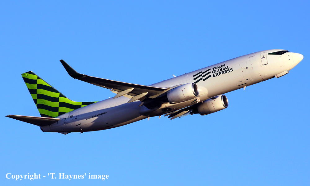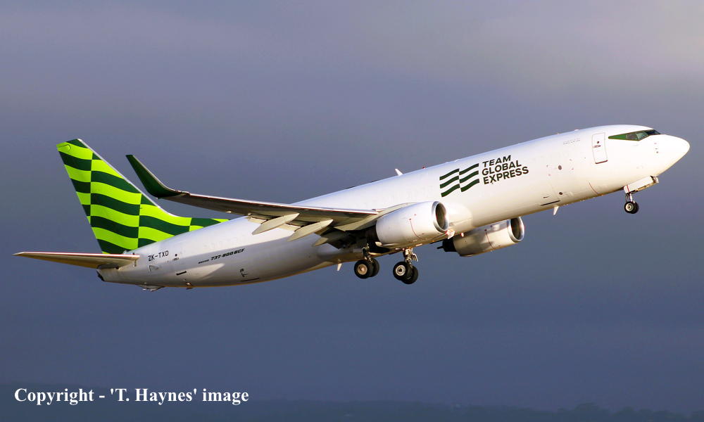 ZK-TXD. Team Global Express - 'Sally' in the standard livery at Christchurch Airport, June 23, 2024. (Z. Rae Copyright Image 4623-474.) |