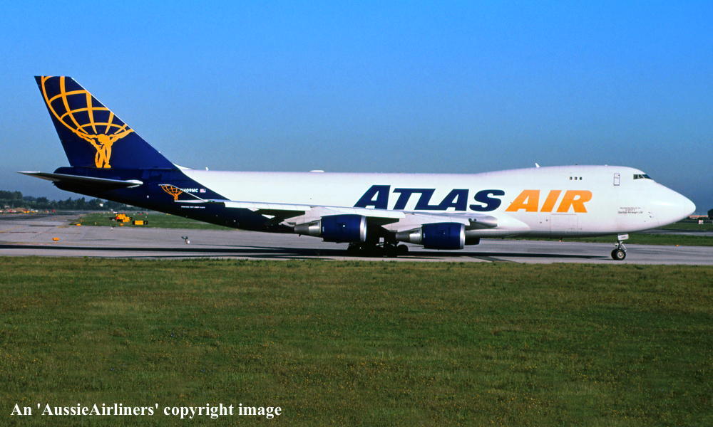 This aircraft was ordered new by Atlas Air - ? Built by the Boeing Company Limited, Everett - 2000 Rolled out at Everett (Paine Field) - February 2000 First flown as 'N409MC' - February 28, 2000 Powered by General Electric CF6-80C2B5F engines Entered onto the United States Aircraft Register as N409MC - March 31, 2000 Registered to First Security Bank, Utah Leased to Atlas Air Inc, Westchester, New York as the registered operator - April 05, 2000 It was observed at Milan in Alitalia Cargo livery with 'Operated By Atlas Air' titles - May 31, 2000 Ferried Rome - Frankfurt for maintenance in Alitalia Cargo livery - July 07, 2000 Registered to Wells Fargo Bank Nortrhwest NA - December 28, 2000 Leased to Atlas Air Inc as the registered operator It was observed at Dubai in the Alitalia Cargo livery - September 13, 2001 It was observed at Sydney (Kingsford Smith) in an all-white livery with blue tail - January 14, 2002 The aircraft had 'Operated By Atlas Air' titles near the aft door Sub-leased to Polar Air Cargo as the registered operator - June 22, 2002 Returned to Atlas Air at the end of the sub-lease - June 27, 2002 The aircraft was involved in non-standard approach at Melbourne (Tullamarine) - September 09, 2012 To read more about this incident please click 'HERE' Registered to Atlas Air Inc, Westchester, New York - October 13, 2016 Qantas Airways entered into a contract with Atlas Air to provide two Boeing 747-47UF frieght aircraft as needed - ? This aircraft was one of seven aircraft in the pool that was used for Qantas Freight operations The aircraft had 'Operated by Atlas Air on Behalf of Qantas Airways Ltd' decals applied to the nose This aircraft was replaced by a Boeing 747-8 series aircraft under the contract - August 25, 2019 It was returned to the wet-lease contract with Qantas Airways - July 01, 2022 Current status Atlas Air |