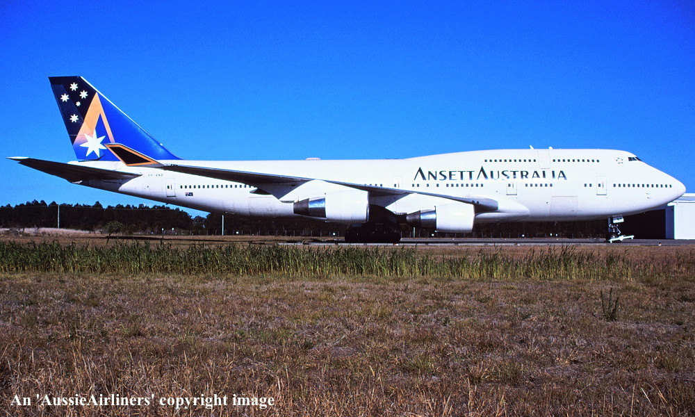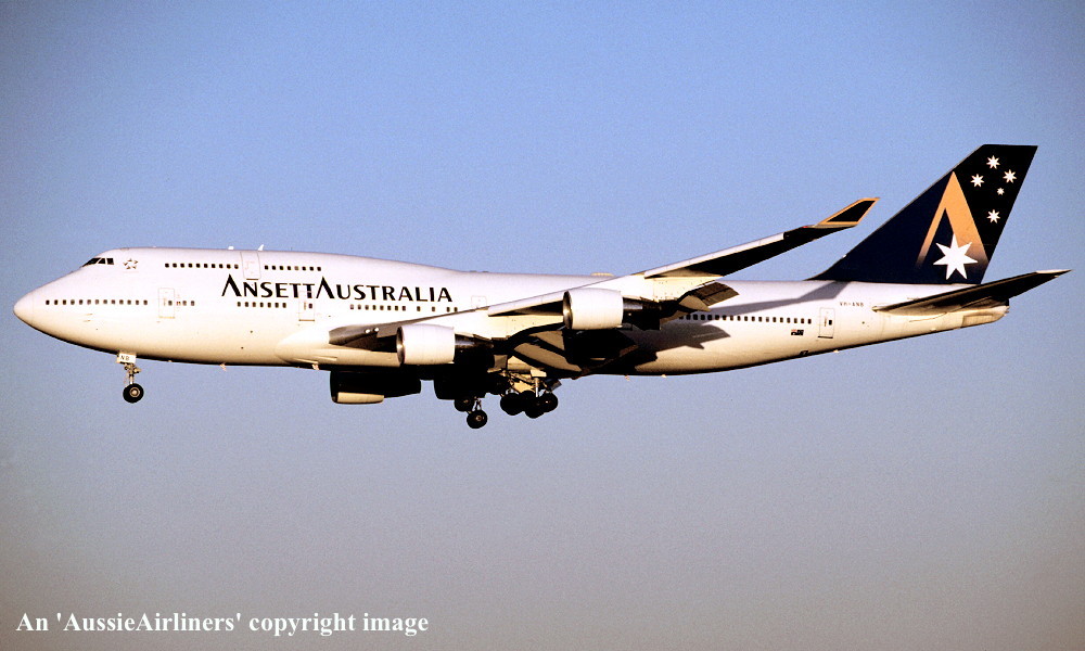VH-ANB. Boeing 747-412. c/n 24064-755. Was also registered as: 9V-SMD; DQ-FJK. |