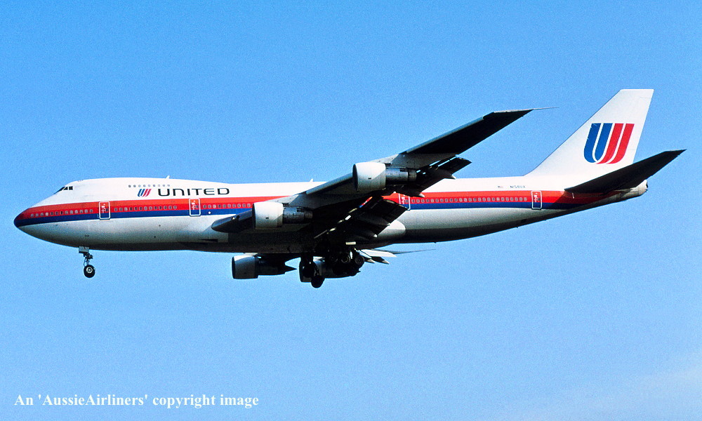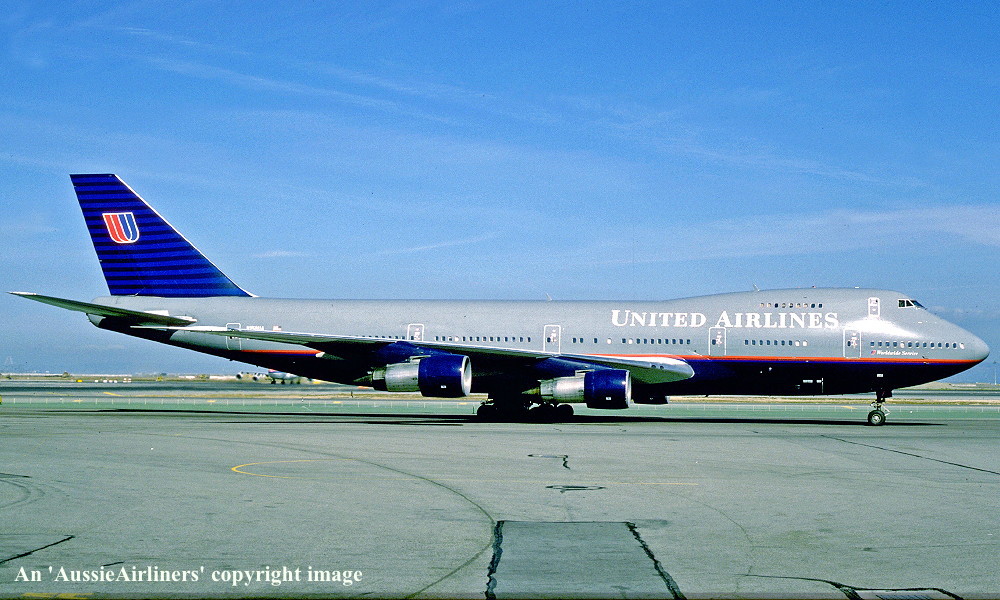 N158UA. United - in the old livery at San Francisco Airport, April 1993. (R. N. Smith Collection Copyright Image 4630-952.) |