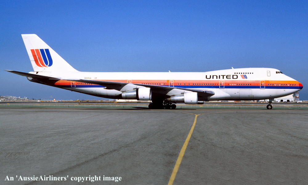 N160UA. United - in the old livery at San Francisco Airport, November 1991. (R. N. Smith Collection Copyright Image 4630-106.) |