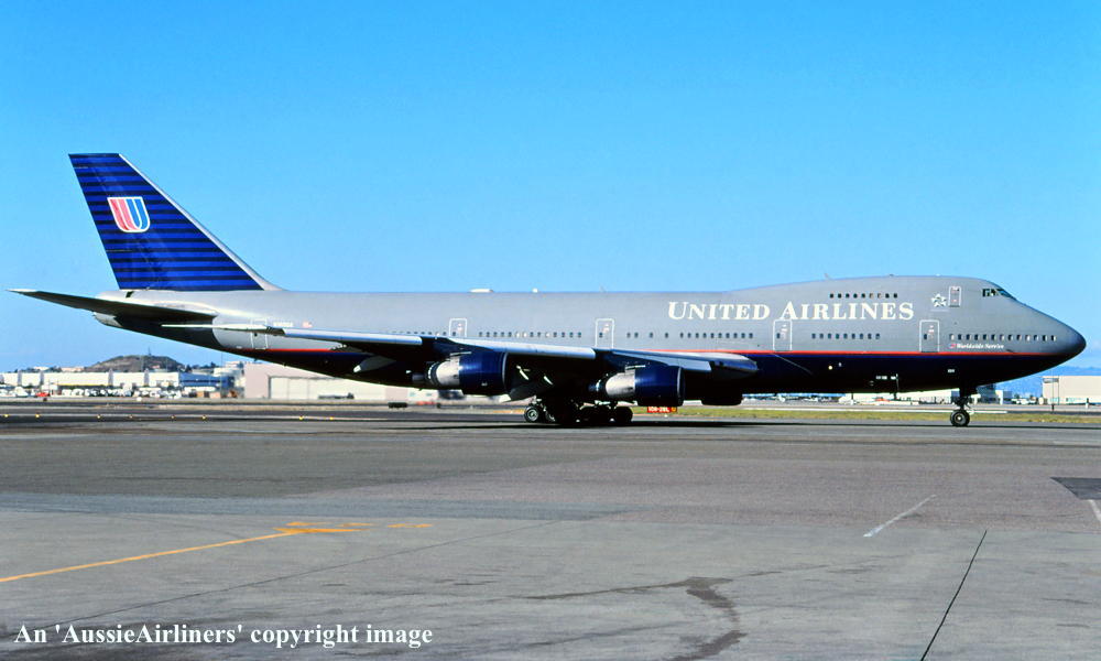 N160UA. United Airlines - in the new livery at San Francisco Airport, September 2000. (R. N. Smith Collection Copyright Image 4631-005.) |