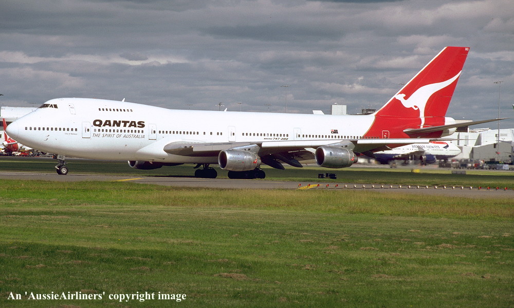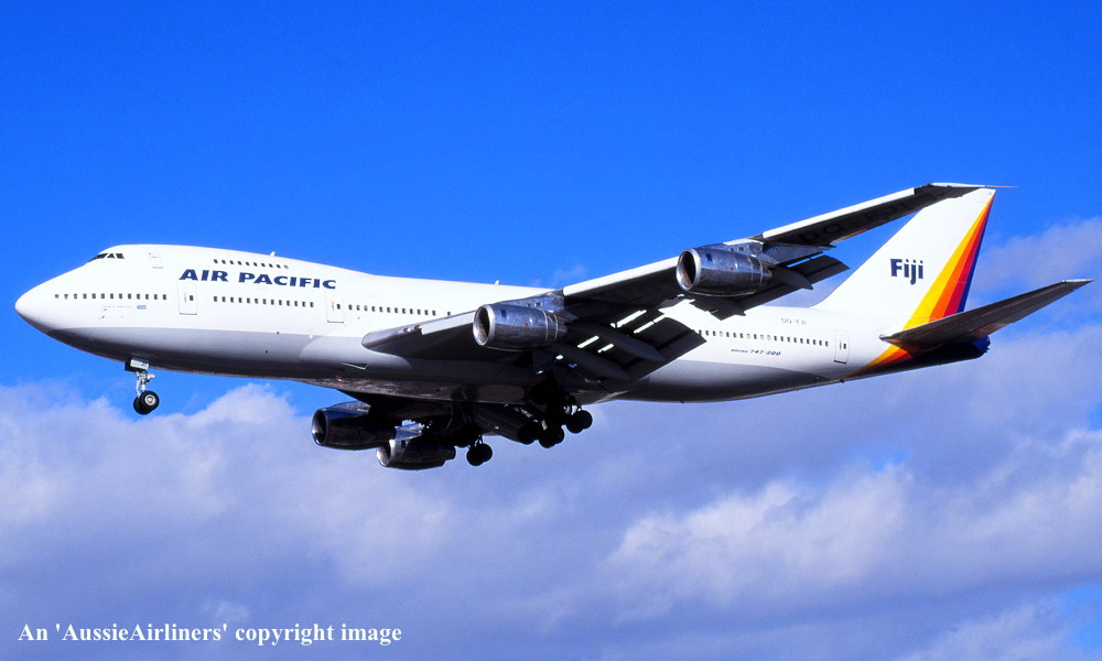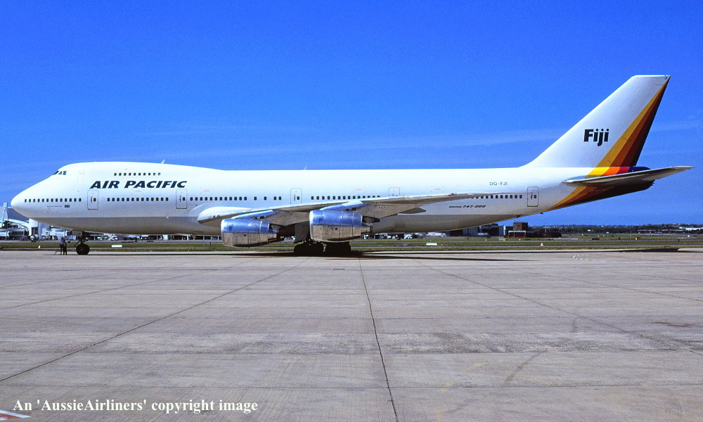 VH-EBQ. Boeing 747-238B. c/n 22145-410. Was also registered as: DQ-FJI. |