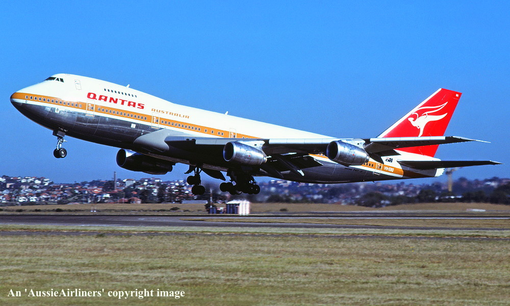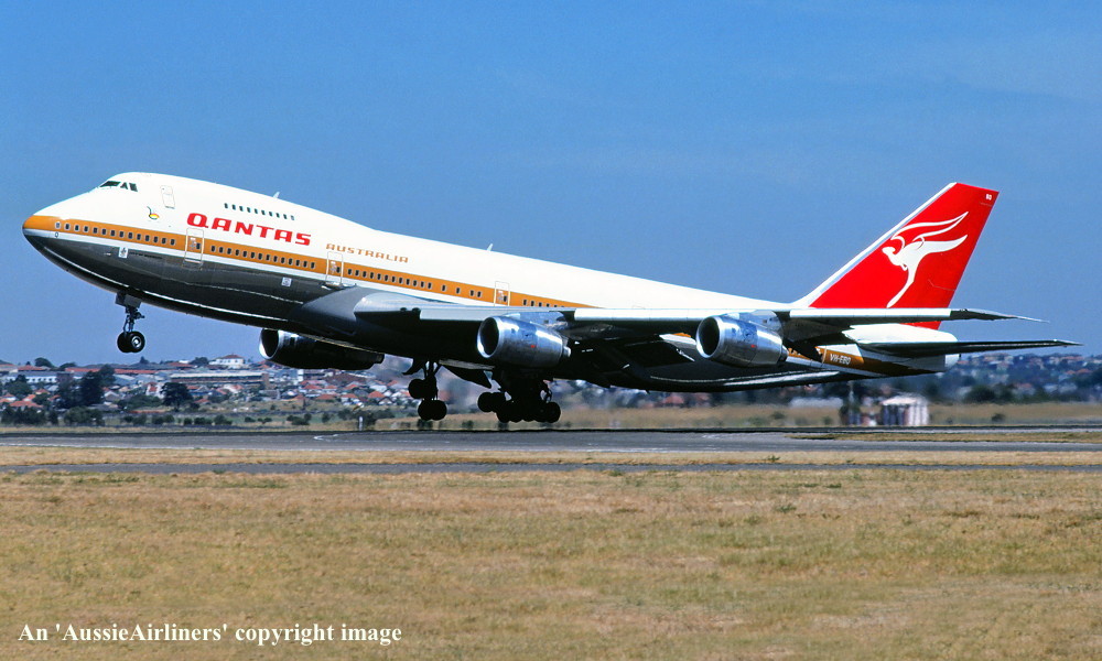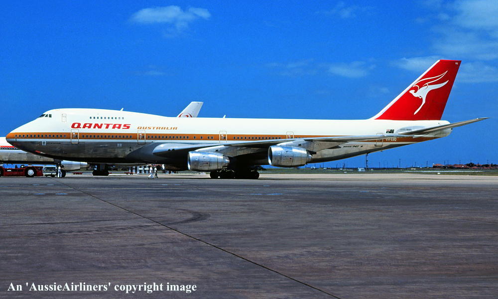 VH-EBQ. Qantas Australia - 'City of Bunbury' in the 'ochre' livery at Sydney Kingsford Smith Airport, August 06, 1983. (N. Louis Collection Copyright Image 4631-484.) |