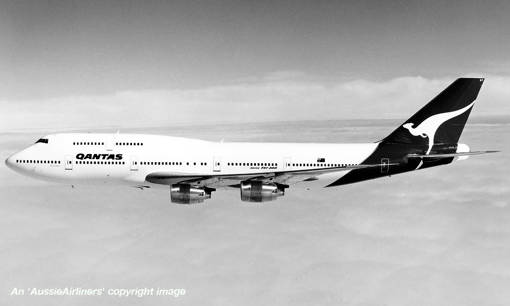VH-EBT. Qantas The Spirit Of Australia - 'City of Canberra' in the standard livery at Sydney Kingsford Smith Airport, August 1986. (R. N. Smith Copyright Image 4631-123.) |