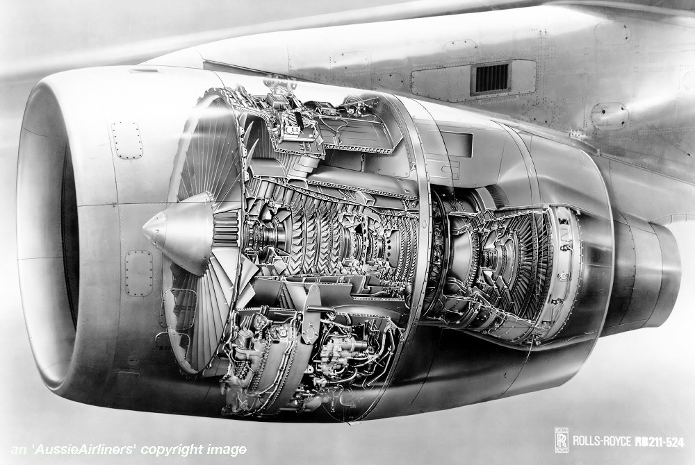 VH-EBT. Qantas - the heart of this aircraft - the Rolls Royce RB211-524 engine. (Qantas Heritage Collection Copyright Image 4630-460.) |