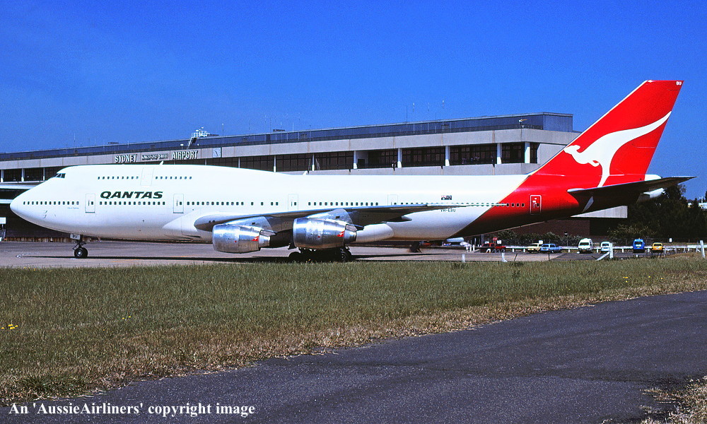 VH-EBU. Qantas The Spirit Of Australia - 'City of Sydney' in the standard livery at Sydney Kingsford Smith Airport, June 1986. (R. N. Smith Copyright Image 4630-828.) |
