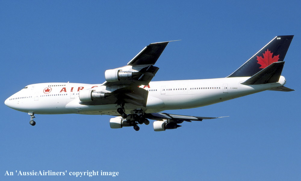 This aircraft was ordered new by Qantas Airways Ltd - July 1976 It was allocated the Boeing Block Number 'RD531' Rolled off the Boeing production line at Everett (Paine Field) - September 19, 1977 First flown - October 04, 1977 Entered onto Australian Aircraft Register as VH-ECA - October 27, 1977 Registered to Qantas Airways Ltd, Sydney Accepted by H. McCarroll for Qantas Airways at Everett (Paine Field) - October 27, 1977 This was the 48th Boeing airliner delivered new to Qantas Airways It was the 14th Boeing 747 delivered to Qantas Airways Ferried Everett (Paine Field) - San Francisco as QF501D - October 27, 1977 Operated its first revenue service San Francisco - Sydney (Kingsford Smith) as QF4 - October 29, 1977 It arrived at Sydney (Kingsford Smith) on completion of the delivery flight - October 31, 1977 Delivery route: San Francisco - Honolulu - Sydney The aircraft was named 'City of Sale' by Mayor of Sale at Sydney (Kingsford Smith) - October 31, 1977 Sold by Qantas to Citibank Leasing (Canada) and leased back - July 08, 1987 Operated its final revenue service Sydney - Port Moresby - Sydney as QF95/96 - August 23, 1987 Withdrawn from use at Sydney having flown 37,853 hours and 8,030 cycles - August 23, 1987 Prepared for sale to Air Canada including major overhaul and Section 41 modifications at Sydney Sold to Aerospace Finance by Citibank Leasing for lease to Air Canada Rolled out at Sydney (Kingsford Smith) in the standard 'Air Canada' livery - December 14, 1987 Departed Sydney (Kingsford Smith) on the delivery flight to Air Canada - January 11, 1988 Cancelled from Australian Aircraft Register - January 12, 1988 Entered onto the Canadian Aircraft Register as C-GAGC - January 12, 1988 Involved in loss-of-separation incident whilst operating London (Heathrow) - Montreal as AC003 - September 27, 1998 To view the report on this incident please click 'HERE' Operated its final Air Canada revenue service Montreal - Toronto as AC425 - January 10, 1999 Ferried Toronto - Tucson - Marana, Arizona for long term storage - January 29, 1999 The aircraft had flown 78,066 hours and 15,067 cycles Sold for parting out at Marana - October 2009 It was observed basically intact at Marana without engines and a green tail - March 22, 2010 It was observed basically intact at Marana without engines and a green tail - March 27, 2011 Cancelled from the Canadian Aircraft Register - April 18, 2012 Scrapped at Marana |
