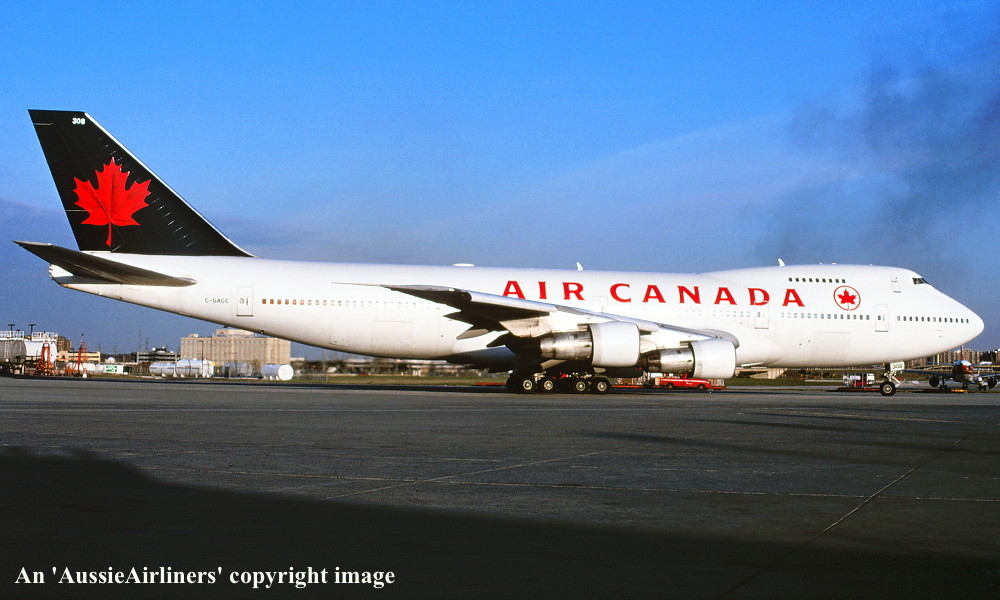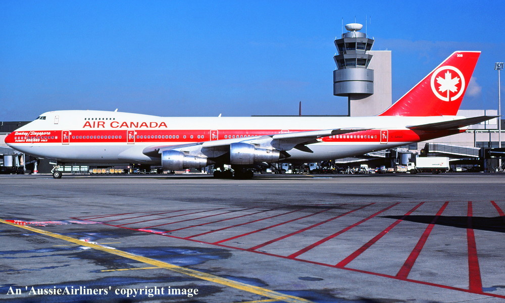 C-GAGC. Air Canada - in the standard livery with additional 'Bombay / Singapore' titles at Toronto Airport, May 1988. (R. N. Smith Collection Copyright Image 4630-844.) |