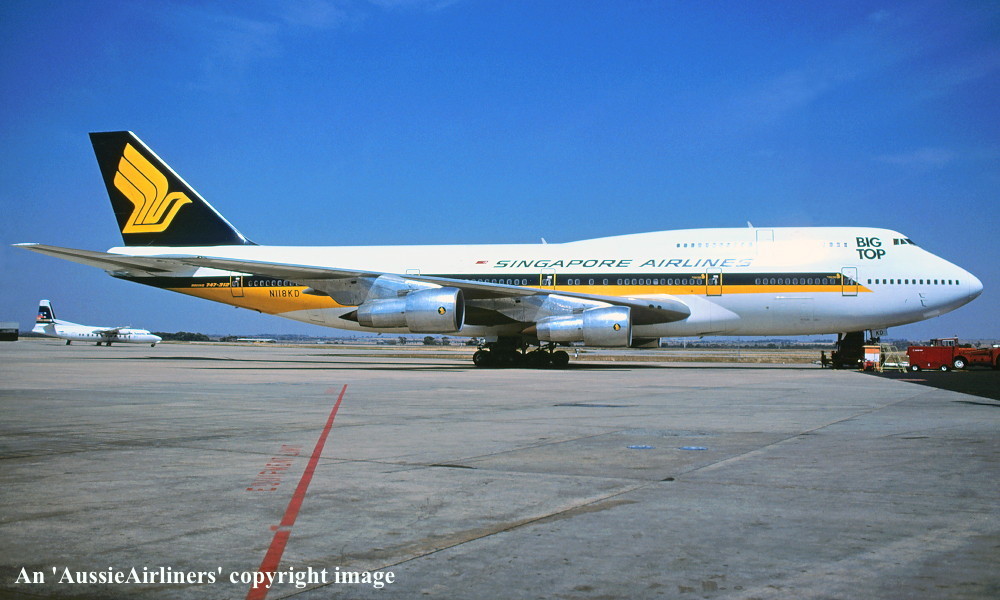 N118KD. Singapore Airlines - in the original livery with additional 'Big Top' titles at Melbourne Tullamarine Airport, January 1986. (R. N. Smith Collection Copyright Image 4631-259.) |