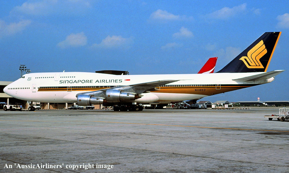 N118KD. Singapore Airlines - in the revised livery with additional 'Big Top' titles at Bangkok Don Mueang Airport, February 1994. (R. N. Smith Collection Copyright Image 4631-343.) |