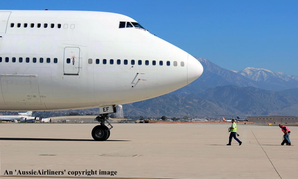VH-OEF. Qantas - in the basic livery at San Bernardino Airport, February 13, 2020. (S. Collins Collection Copyright Image 4631-659.) |