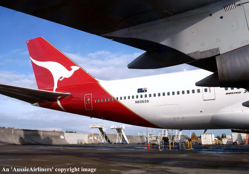 N60659. Qantas Spirit of Australia - 'Sydney' in the standard livery at Everett Paine Field, September 2002. (S. Collins Collection Copyright Image 4631-729.) |