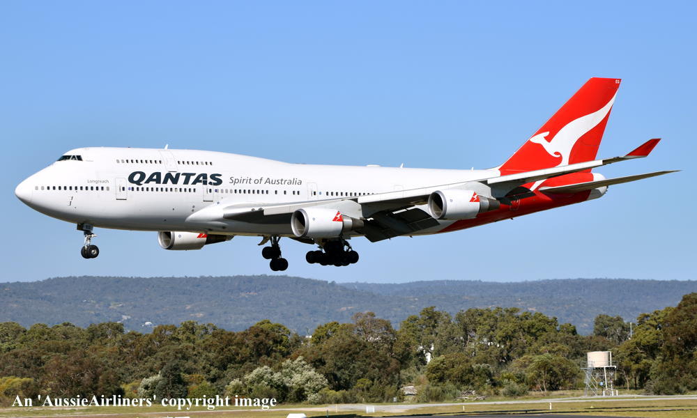 VH-OEG. Qantas Spirit of Australia - 'Parkes' in the 'New Roo' livery at Perth Airport, August 13, 2018. (D. Gibbs Copyright Image 4631-549.) |
