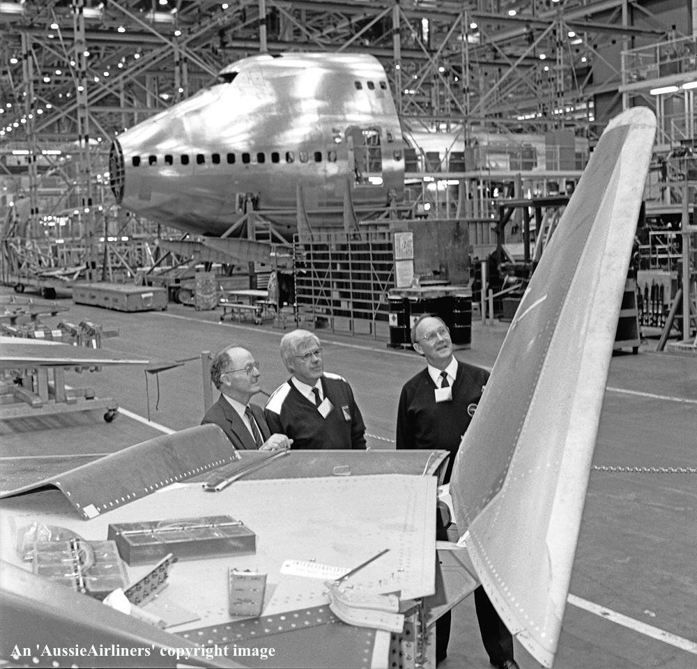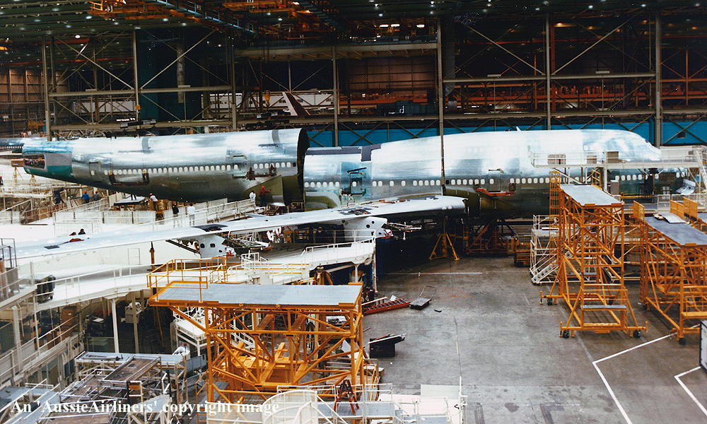 VH-OJA. Qantas Airways - on the production line at the Boeing Everett plant, 1988. (Qantas Heritage Collection Copyright Image 4630-757.) |