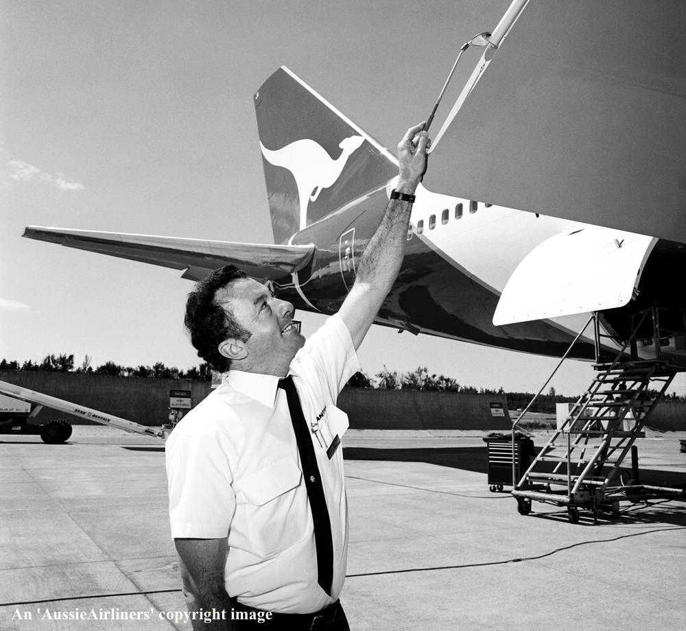 VH-OJA. Qantas The Spirit of Australia - 'City of Canberra' in the standard livery at Sydney Kingsford Smith Airport, August 17, 1989. (Qantas Heritage Collection Copyright Image 4630-754.) |