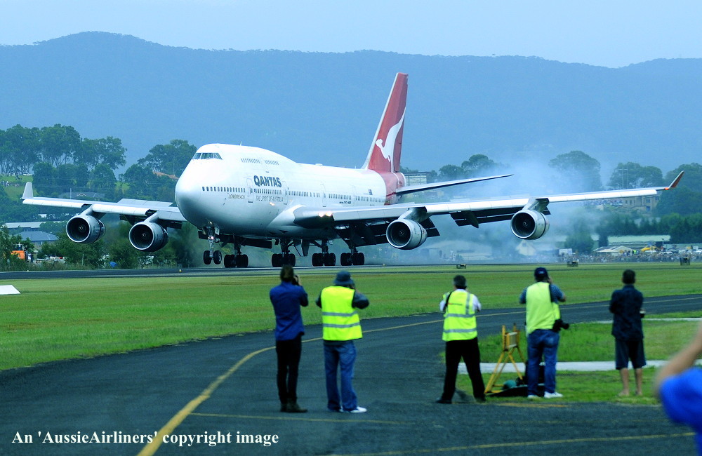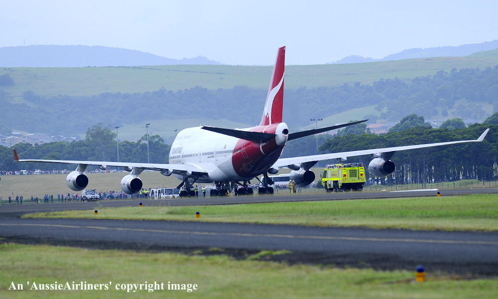 VH-OJA. Qantas The Spirit of Australia - 'City of Canberra' in the standard livery at Albion Park Regional Airport, March 08, 2015. (G. Hutchison Copyright Image 4631-105.) |