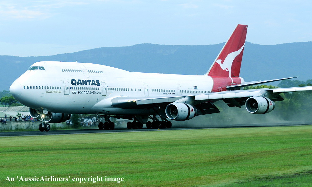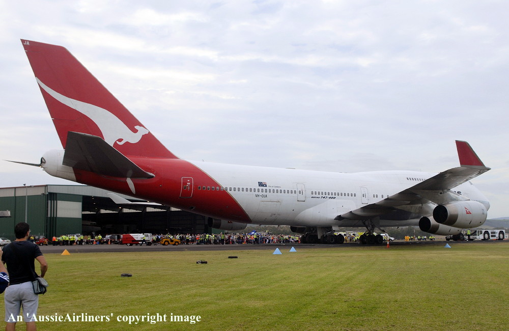 This was the first of four Boeing 747-438s ordered new by Qantas - March 02, 1987 It was allocated the Boeing Block Number 'RT551' Rolled off the Boeing production line at Everett (Paine Field) - February 1989 It was the 16th Boeing 747-400 to be built by Boeing Powered by Rolls Royce RB211-524G2 engines First flown as 'N6064P' - July 03, 1989 Entered onto the Australian Aircraft Register as VH-OJA - August 11, 1989 Registered to Qantas Airways Ltd, Sydney The aircraft was named 'City of Canberra' at Everett (Paine Field) - August 11, 1989 Ferried Everett (Paine Field) - Las Vegas as BOE551 - August 11, 1989 It was accepted by T. Ford for Qantas Airways at Las Vegas - August 11, 1989 This was the 76th Boeing airliner delivered new to Qantas Airways It was the 31st Boeing 747 delivered to Qantas Ferried Las Vegas - Vancouver as QF510 - August 11, 1989 Ferried Vancouver - Everett (Paine Field) by Captain D. Massy-Greene as QF511 - August 12, 1989 Ferried Everett (Paine Field) - London (Heathrow) by Captain D. Massy-Greene as QF512 - August 13, 1989 Departed London (Heathrow) on the delivery flight to Australia as QF7441 - August 16, 1989 It arrived at Sydney (Kingsford Smith) on completion of the delivery flight - August 17, 1989 Delivery route: Seattle - London - Sydney Flight crew: Captains D. Massy-Greene, R. Heiniger, G. Greenop, G. Lindeman The non-stop London - Sydney record flight of 18,001 kms was flown in 20 hours 10 minutes For more information regarding this record-breaking delivery flight click 'HERE' Additional titles 'We Go Further' applied after the non-stop delivery flight in Sydney Operated its first revenue service Sydney - Melbourne - Sydney as QF28/QF001 - September 06, 1989 Operated first international revenue service Sydney - Auckland - Sydney as QF43/QF44 - September 07, 1989 Wet leased by Ansett Australia to cover the temporary loss of their Boeing 747 VH-INH - October 22 - 23, 1994 Operated Ansett Australia services Sydney - Kansai - Brisbane - Sydney Registered to Qantas Airways Ltd - August 30, 2005 Operated its final revenue service Johannesburg - Sydney (Kingsford Smith) as QF64 - January 13, 2015 Withdrawn from use and stored at Sydney (Kingsford Smith) pending its final flight To view lastest Qantas Media Release regarding the future of this aircraft please click 'HERE' Ferried Sydney (Kingsford Smith) - Albion Park Regional Airport as QF7474 - March 08, 2015 Flight crew: Captain Greg Matthews (Head of B-747 Training); First Officer Peter Hagley (B-747 Technical Pilot); Second Officer Michael East Observers: Captain Ossie Miller (Boeing 747 Fleet Captain) The aircraft departed Sydney (Kingsford Smith - 07:36 local) and arrived at Albion Park at 07:47 local The final flight of 59 statute miles was completed in 12 minutes Officially handed over to HARS at Albion Park Regional Airport - March 14, 2015 The aircraft was then decommissioned and placed on permanent display at HARS Cancelled from the Australian Aircraft Register - March 31, 2015 It had flown 106,154 hours with 13,862 cycles |