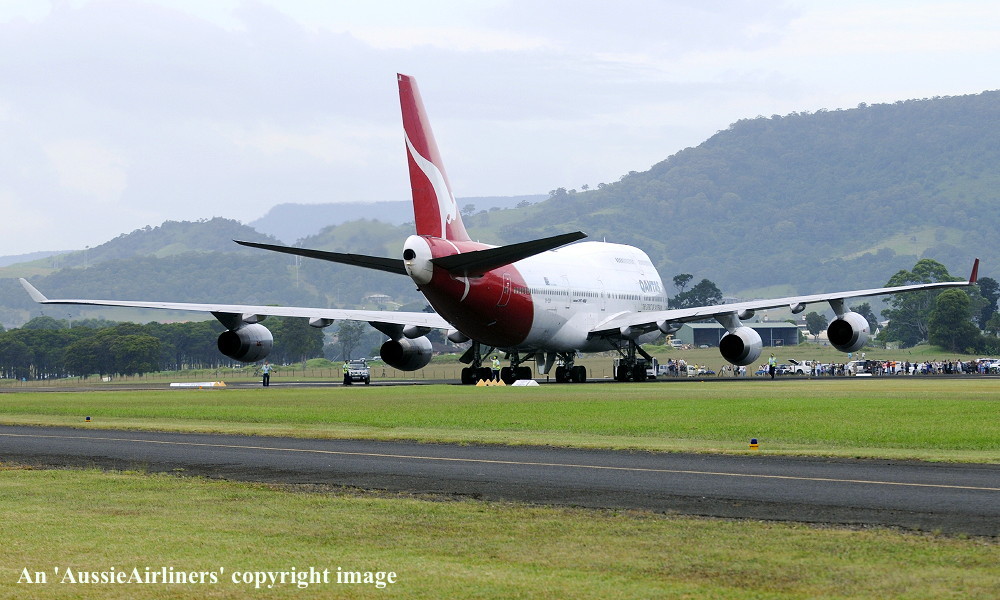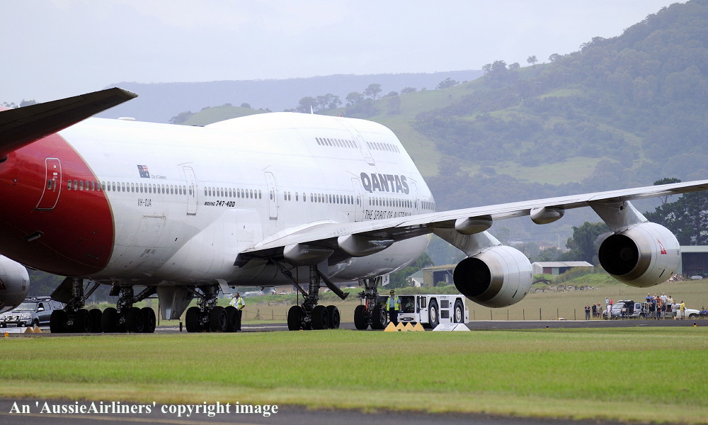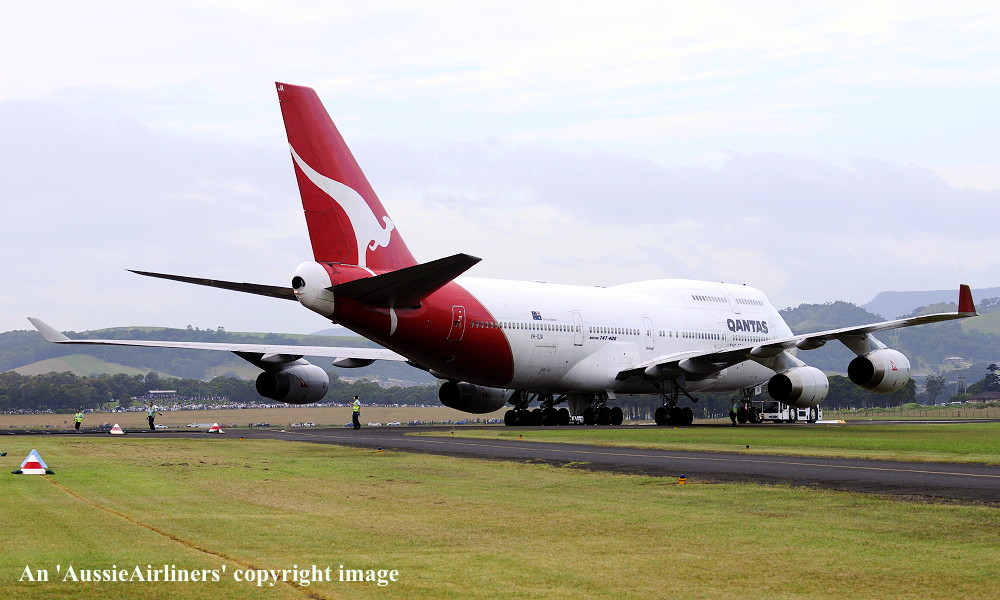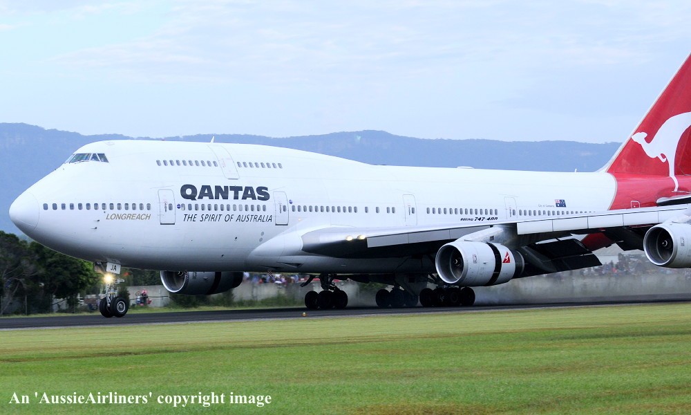 VH-OJA. Qantas The Spirit of Australia - 'City of Canberra' in the standard livery at Albion Park Regional Airport, March 08, 2015. (G. Hutchison Copyright Image 4631-108.) |