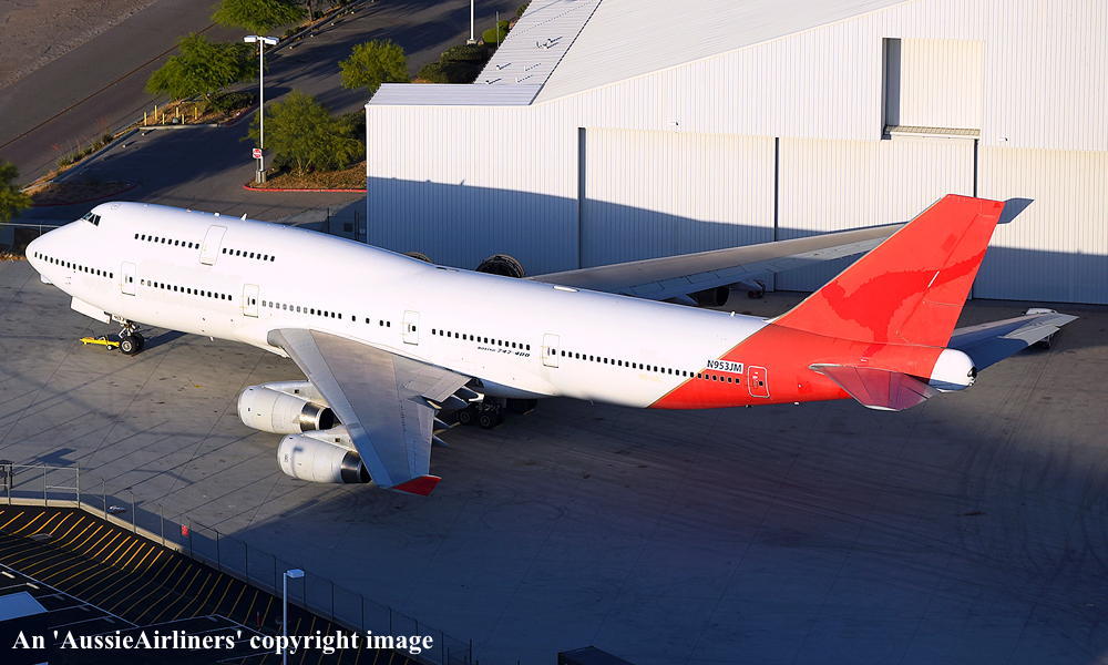 N953JM. Qantas - in the basic livery at Victorville Airport, June 14, 2020. (J. Zhang Copyright Image 4631-707.) |