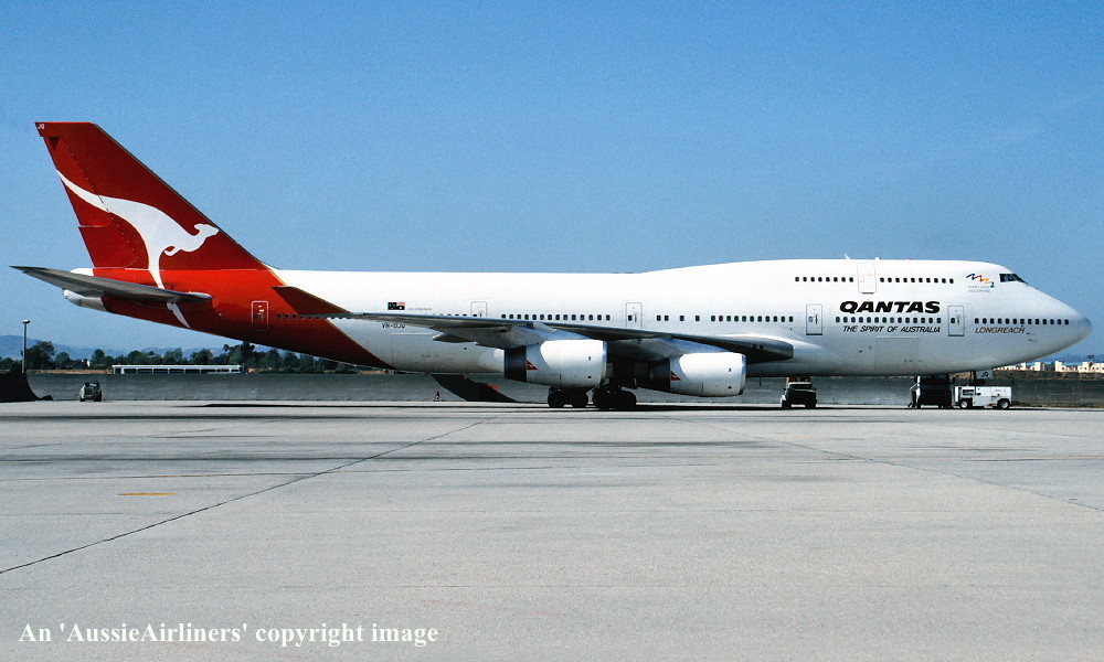 This was the third of four new Boeing 747-438s ordered by Qantas Airways - December 16, 1991 It was allocated the Boeing Block Number 'RT567' Rolled off the Boeing production line at Everett (Paine Field) as 'N6046P' - May 27, 1992 Powered by Rolls Royce RB211-524G2 engines of 58,000 pounds thrust Aircraft had a MTOW of 870,000 lbs and a MLW of 652,000 kg First flown as test flight (B1) as 'N6046P' - June 15, 1992 Second test flight (B2) flown - July 08, 1992 Customer walk through of the airframe - July 14, 1992 Qantas test flight (C1) flown - July 15, 1992 FAA Export Certificate of Airworthiness (CofA) issued - July 18, 1992 Aircraft was technically accepted by Qantas Airways at Everett - July 20, 1992 The aircraft was then 'stored' at Everett (Paine Field) - to read more on the storage please click 'HERE' Entered onto the Australian Aircraft Register as VH-OJQ - August 05, 1992 Registered to Qantas Airways Ltd, Sydney The Qantas acceptance flight was flown (Captain D. Massy-Greene) - September 1992 The aircraft was named 'City of Mandurah' at Everett (Paine Field) - September 17, 1992 Accepted by S. Collins on behalf of Qantas Airways at Everett (Paine Field) at 09:45 (local) - September 18, 1992 CAA Certificate of Registration (CofR) and Certificate of Airworthiness (CofA) issued - September 18, 1992 This was the 100th Boeing jetliner to be delivered to Qantas Airways It was the 47th Boeing 747 delivered to Qantas To view the official Qantas Aircraft Receipt document on this aircraft please click 'HERE' The aircraft had flown 65 hours 41 minutes (flight hours) at the time of acceptance It had flown a total of 23 flight cycles at the time of acceptance Departed Everett (Paine Field) at 14:25 (local) for Vancouver as QF7417P - September 18, 1992 Ferried Vancouver - Los Angeles as QF7417D - September 18, 1992 Operated its first revenute service Los Angeles - Sydney (Kingsford Smith) as QF531 - September 19, 1992 It arrived at Sydney (Kingsford Smith) on completion of the delivery flight - September 20, 1992 Delivery route: Everett - Vancouver - Los Angeles - Sydney Flight crew: Captain K. Davenport; F/O P. Davenport; SFA S. Turk The aircraft was renamed 'Mandurah' - August 2003 Registered to Wilmington Trust Co. - May 11, 2006 Leased to Qantas Airways Ltd, Sydney as the registered operator Registered to TJT Leasing Pty Ltd, Sydney - June 23, 2008 Leased to Qantas Airways Ltd, Sydney as the registered operator Operated its final revenue service Sydney (Kingsford Smith) - Los Angeles as QF11 - October 31, 2012 Ferried Los Angeles - Victorville for storage as QF6021 - November 01, 2012 It was observed stored intact at Victorville - April 28, 2013 Cancelled from the Australian Aircraft Register - September 08, 2014 Entered onto the United States Aircraft Register as N951JM - September 23, 2014 Registered to Bank of Utah, Salt Lake City The aircraft remains stored intact at Victorville It is registered to Bank of Utah, Salt Lake City - January 15, 2019 Current status - ?