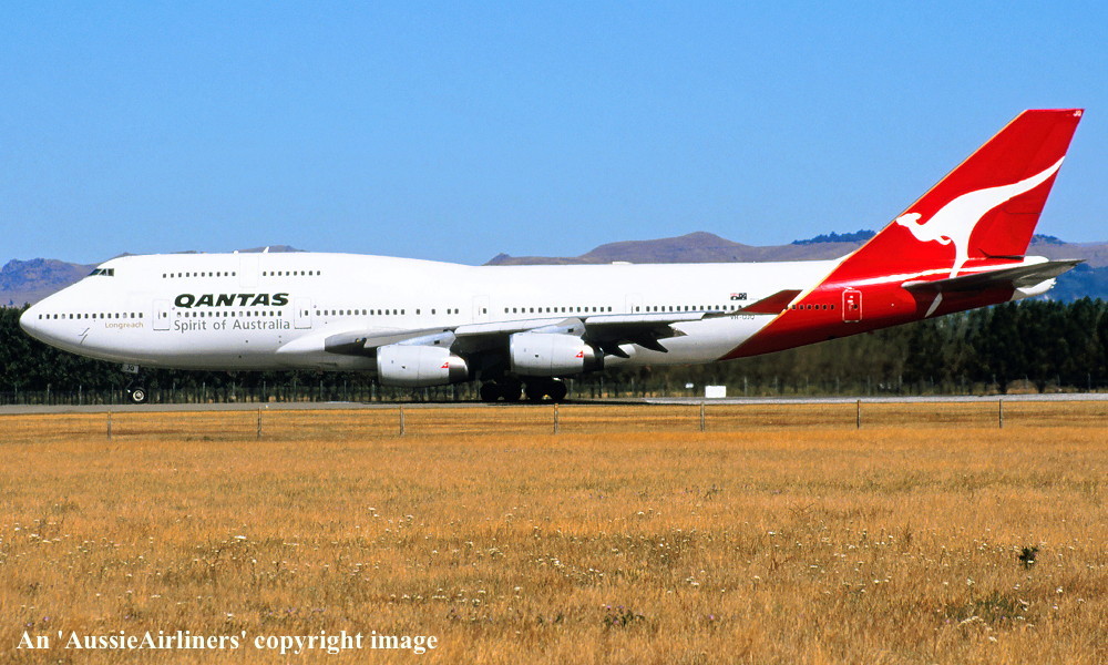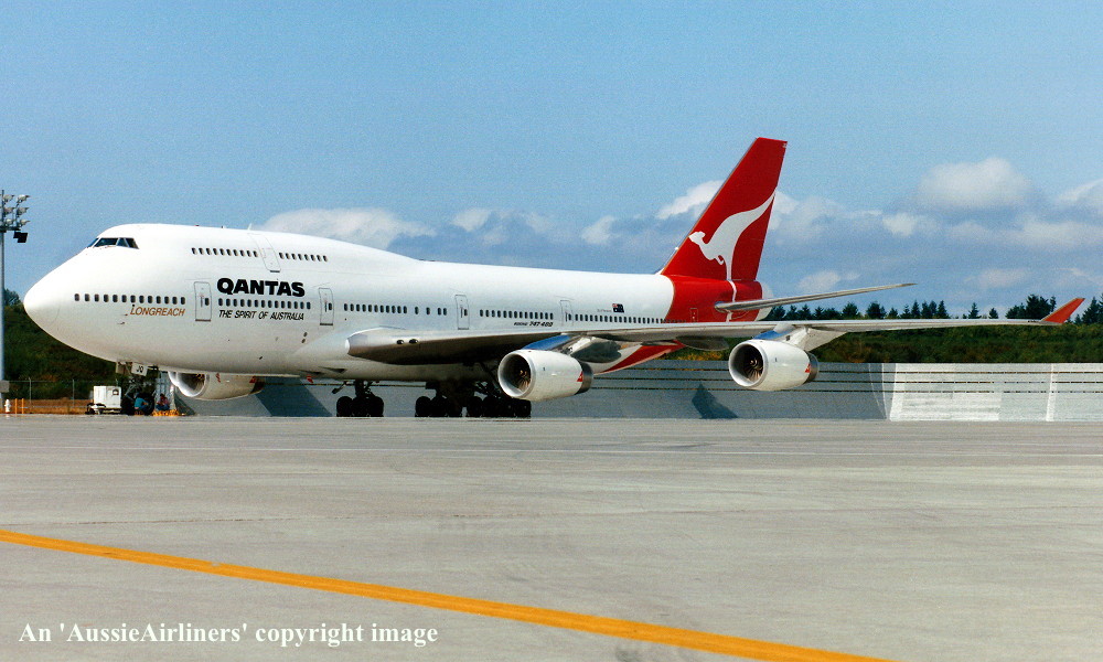 VH-OJQ. Qantas Spirit of Australia - 'Mandurah' in the standard livery at Christchurch Airport, February 2006. (G. Reid Copyright Image 4630-972.) |