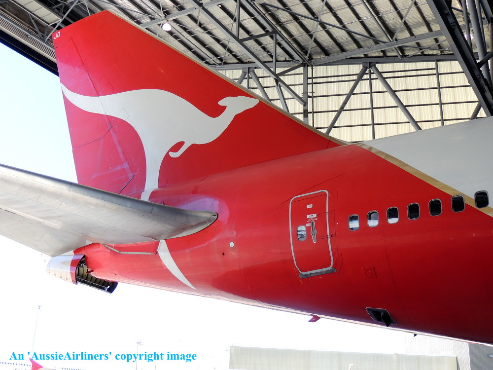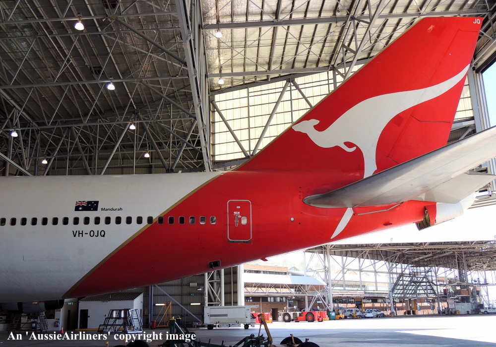 VH-OJQ. Qantas Spirit of Australia - 'Mandurah' in the standard livery at Sydney Kingsford Smith Airport, October 29, 2012. The aircraft is being prepared for its final revenue service. (S. Collins Copyright Image 4631-297.) |