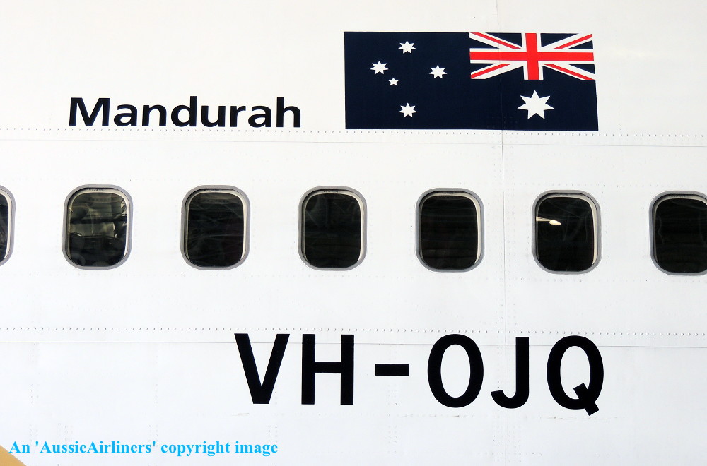 VH-OJQ. Qantas Spirit of Australia - 'Mandurah' in the standard livery at Sydney Kingsford Smith Airport, October 29, 2012. The aircraft is being prepared for its final revenue service. (S. Collins Copyright Image 4631-306.) |