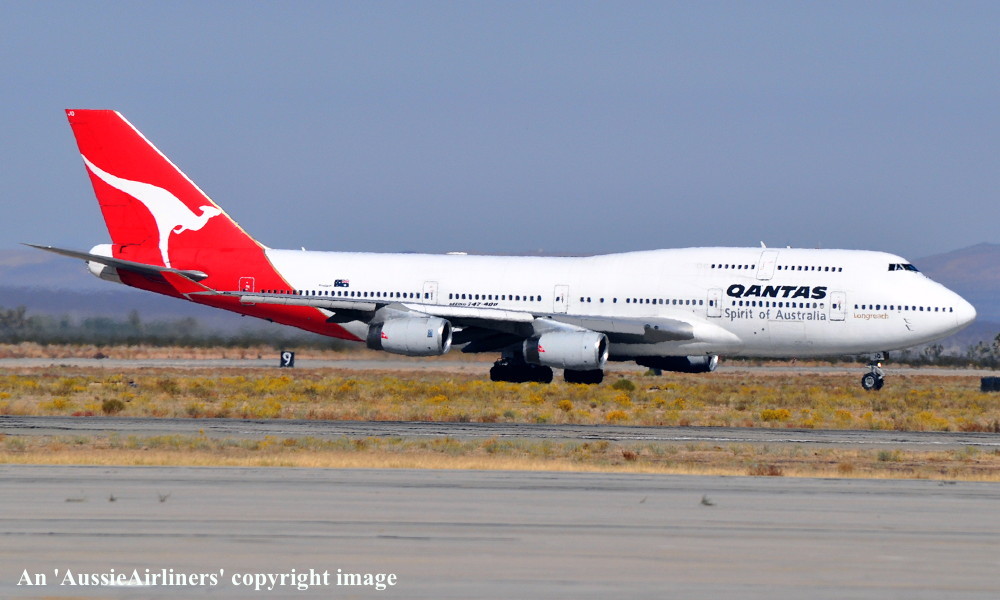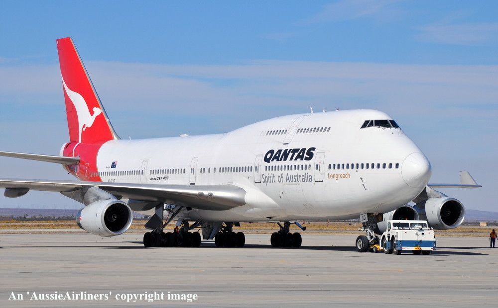 VH-OJQ. Qantas Spirit of Australia - 'Mandurah' in the standard livery at Victorville, November 01, 2012. (S. Collins Copyright Image 4631-320.) |