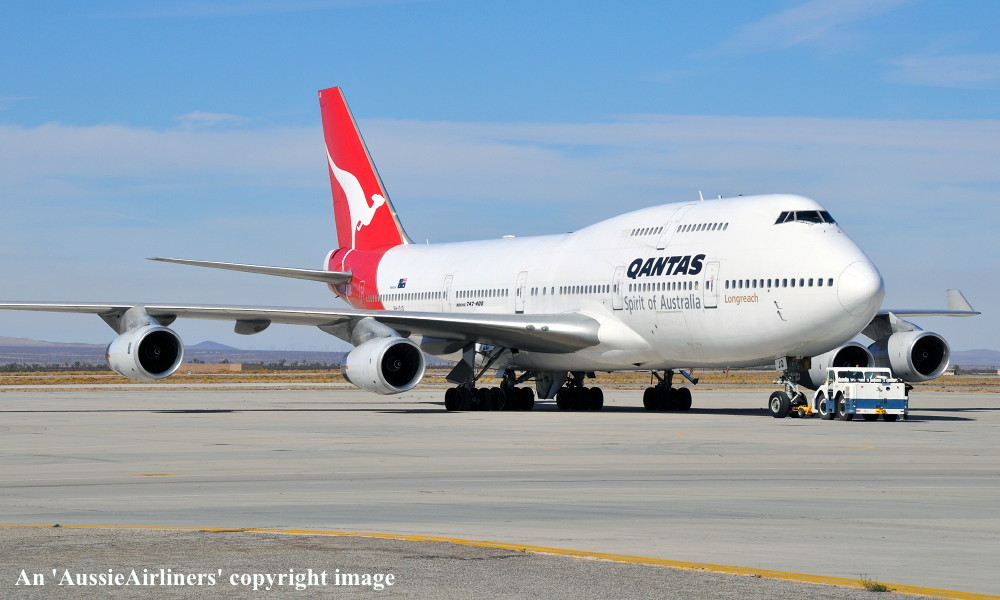 VH-OJQ. Qantas Spirit of Australia - 'Mandurah' in the standard livery at Victorville, November 01, 2012. (S. Collins Copyright Image 4631-321.) |