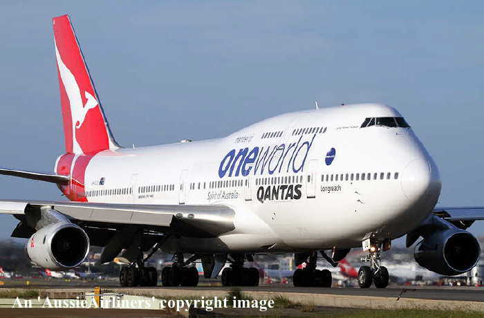VH-OJU. Qantas Spirit of Australia - 'Lord Howe Island' in the 'New Roo' livery with additional 'One World' titles at Sydney Kingsford Smith Airport, August 2011. (S. Jaworski Copyright Image 4630-875.) |