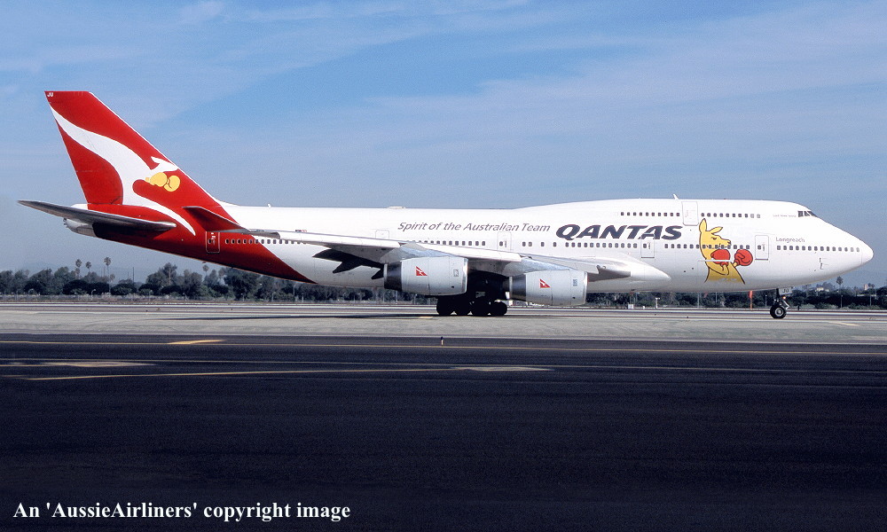 VH-OJU. Qantas The Spirit Of Australia - 'Lord Howe Island' in the original livery at Los Angeles Airport, February 2000. (F. Murrell Copyright Image 4631-530.) |