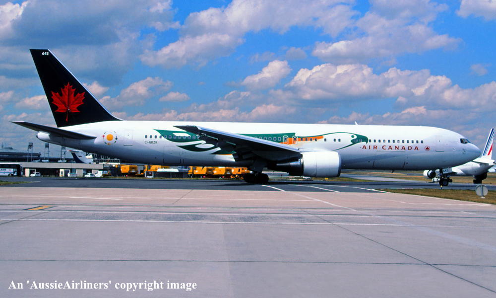C-GBZR. Air Canada - in the 'Free Spirit' livery at Paris Orly Airport, August 2002. (R. N. Smith Collection Copyright Image 4650-876.) |
