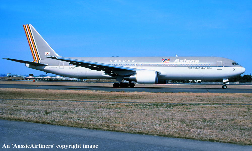 HL7267. Asiana - in the standard livery with additional 'Visit Korea Year 1994' titles at Nagoya Airport, March 21, 1994. (R. N. Smith Collection Copyright Image 4655-175.) |