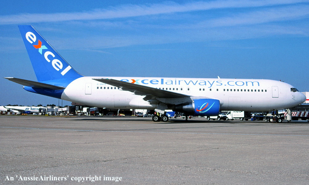 G-BNYS. Excel Airways - in the standard livery at an unknown airport, June 2003. (R. N. Smith Collection Copyright Image 4655-089.) |