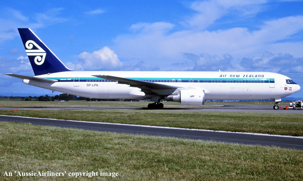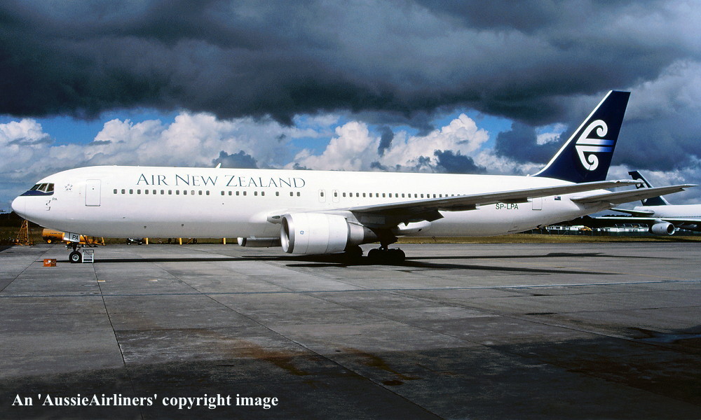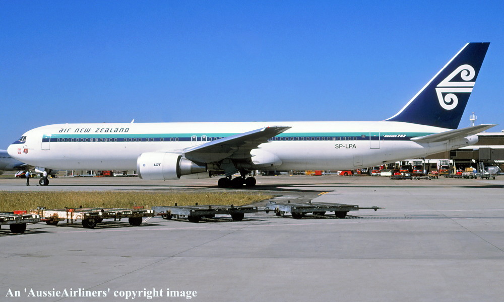 SP-LPA. Air New Zealand - in the white livery at Auckland Airport, January 2000. (C. Laugier Copyright Image 4655-070.) |