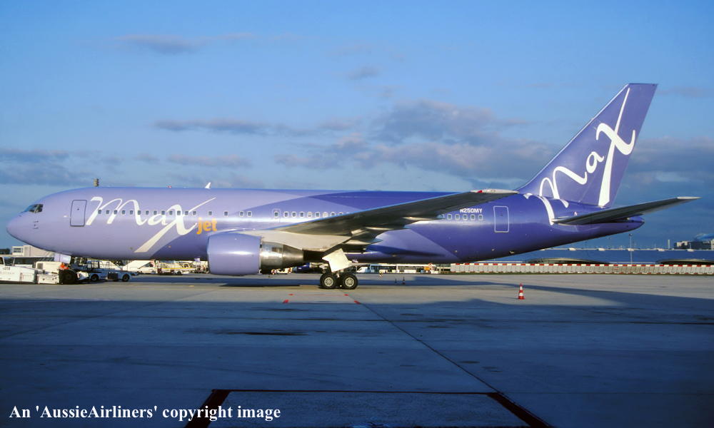 N250MY. MaxJet - in the standard livery at New York JFK Airport, April 2006. (R. N. Smith Collection Copyright Image 4650-099.) |
