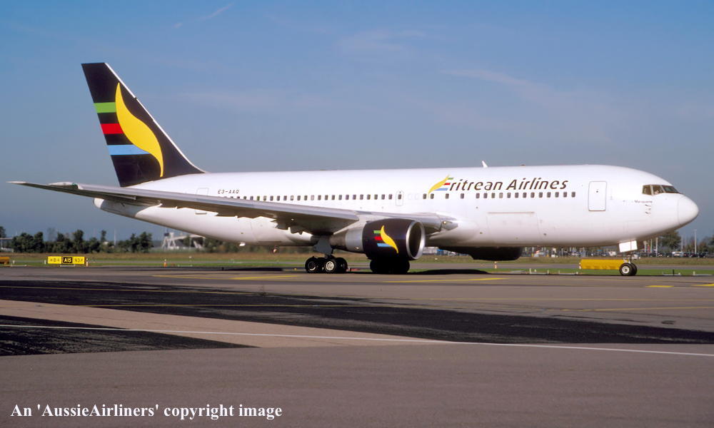 This aircraft was the fourth of six Boeing 767-238s ordered new by Qantas Airways - September 1983 It was allocated the Boeing Block Number 'VE066' Rolled off the Boeing production line at Everett (Paine Field) - October 16, 1985 Powered by Pratt & Whitney JT9D-7R4E engines First flown as 'N6018N' - November 16, 1985 Entered onto Australian Aircraft Register as VH-EAM - December 12, 1985 Registered to Qantas Airways Ltd, Sydney Accepted by R. Walker for Qantas Airways at Everett (Paine Field) - December 12, 1985 This aircraft was the 65th Boeing airliner delivered new to Qantas Airways It was the 4th Boeing 767 delivered to Qantas Departed Everett (Paine Field) on the delivery flight to Australia as QF7674 - December 12, 1985 Arrived at Sydney (Kingsford Smith) on completion of the delivery flight from the United States - December 14, 1985 Delivery route: Everett - Honolulu - Sydney It operated its first revenue service Sydney (Kingsford Smith) - Brisbane - Auckland as QF141 - December 24, 1985 Ferried Sydney (Kingsford Smith) - Williamtown for the naming ceremony as QF1767 - February 04, 1986 The aircraft was named 'City of Lake Macquarie' at the RAAF Base Williamtown Ferried Williamtown - Sydney (Kingsford Smith) as QF2767 - February 04, 1986 It was offered for sale by Qantas Airways - March 04, 2003 The aircraft had flown 56,131 hours with 24,224 cycles to date It operated its last revenue service Melbourne (Tullamarine) - Sydney (Kingsford Smith) as QF490 - April 10, 2004 It was withdrawn from service and the company name and titles were removed Departed Sydney (Kingsford Smith) on the ferry flight to the United States for storage as QF6023 - April 18, 2004 It arrived at Mojave on completion of the ferry flight - April 19, 2004 Ferried route: Sydney - Honolulu - Mojave Sold to Lehman Brothers Commercial Paper Incorporated - April 19, 2004 Sold to West Dover LLC, New York - April 19, 2004 Cancelled from Australian Aircraft Register - April 22, 2004 It was advertised for sale by Blue Star Aviation, Kansas City Entered onto the United States Aircraft Register as N771WD - May 07, 2004 Registered to West Dover LLC Ferried Mojave - Miami in the basic 'Qantas' livery - June 09, 2004 Cancelled from United States Aircraft Register - June 09, 2004 Entered onto Eritrean Aircraft Register as E3-AAQ - June 09, 2004 Leased to Eritrean Airlines as the registered operator It was observed at Frankfurt in the Eritrean Airlines livery - July 31, 2004 Eritrean Airlines ceased scheduled operations to concentrate on hadj flights - December 2009 The aircraft was placed in storage at Tel Aviv, Israel - December 2009 Ferried Tel Aviv - Asmara for reactivation - April 01, 2010 It operated ad-hoc charter flights from Asmara to Frankfurt and Amsterdam (Schiphol) Ferried Asmara - Frankfurt for maintenance - July 20, 2011 Ferried Frankfurt - Shannon for repainting by Eirtech - August 20, 2011 Rolled out at Shannon in new 'Eritrean Airlines' livery - August 30, 2011 Ferried Shannon - Frankfurt - Asmara on return to service - September 01 - 05, 2011 Current status - ? |