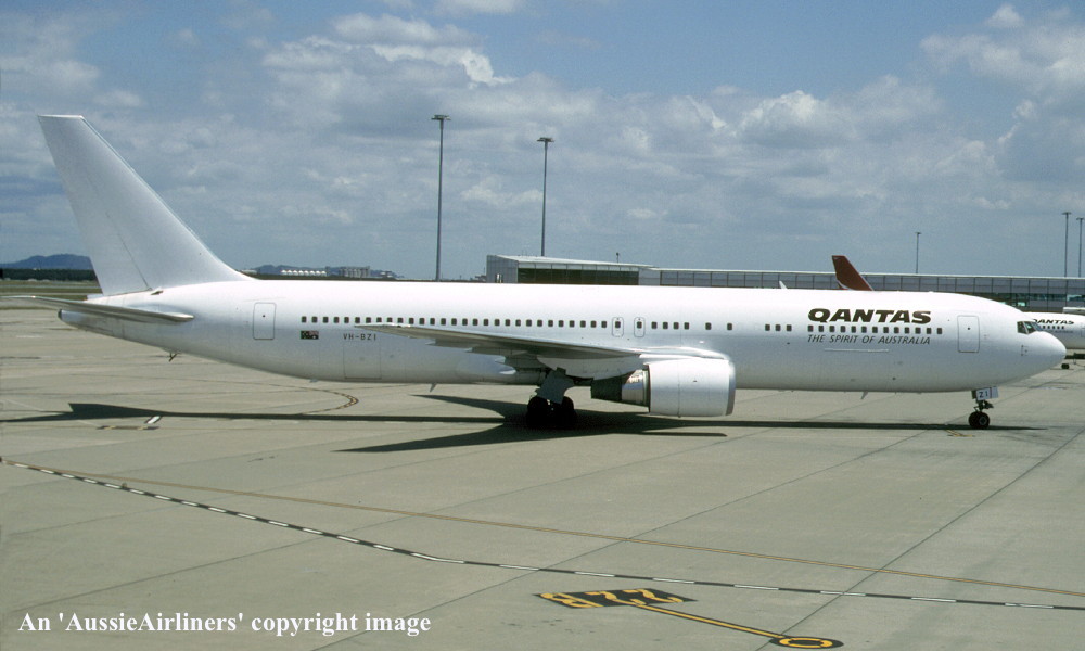 VH-BZI. Qantas The Spirit Of Australia - in the all-white livery at Brisbane Airport, September 2002. (R. N. Smith Collection Copyright Image 4650-016.) |
