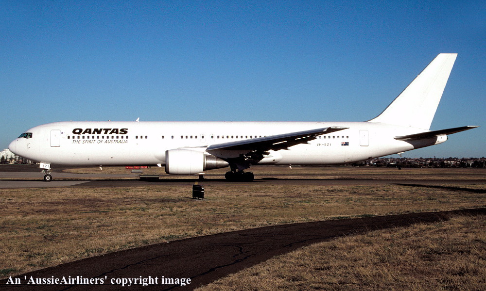 VH-BZI. Qantas The Spirit Of Australia - in the all-white livery at Sydney Kingsford Smith Airport, August 2002. (R. N. Smith Copyright Image 4650-017.) |